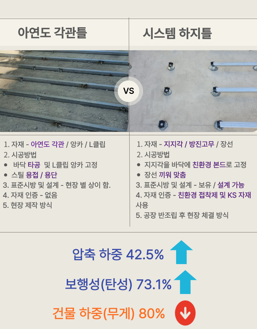 ![]() | 방수 시공 바닥 타공을 하지 않아 누수가 없으며, 건물 보호가 가능합니다. |